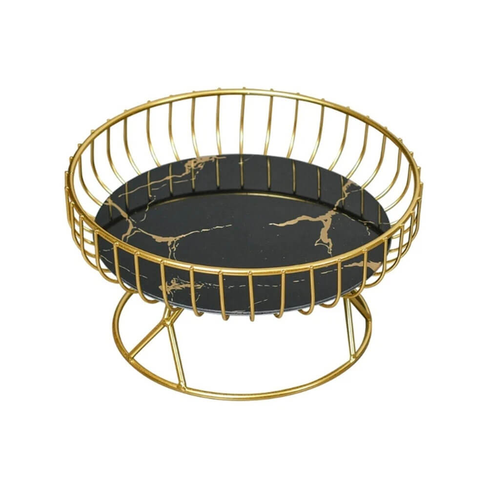 Elevate your kitchen or dining space with this luxurious pedestal fruit bowl. Featuring a sleek marble base with delicate veining, it is complemented by an elegant gold wire frame and sturdy pedestal stand. Perfect for showcasing fresh fruits or as a decorative centerpiece, this bowl adds a touch of sophistication and functionality to any setting.