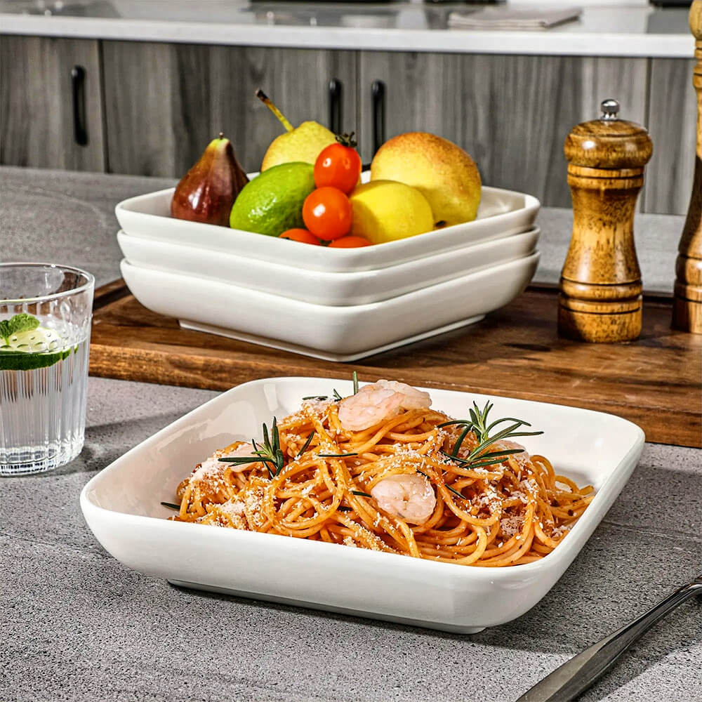 Crafted from premium porcelain, this set of serving bowls combines durability with timeless elegance. The smooth, glossy finish and gently curved edges create a refined look, perfect for casual and formal dining. Designed for versatility, these bowls are ideal for serving salads, pasta, or side dishes. Their sturdy, chip-resistant construction ensures long-lasting use, while the stackable design saves space. Elevate your dining experience with these sophisticated, easy-to-clean porcelain serving bowls.